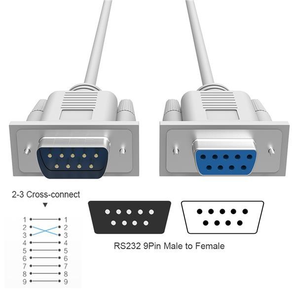 1.5M 3M 5M 10M 15M RS232 Serial DB9 9Pin Male to Female 2-3 Cross Line Cable 9 pin