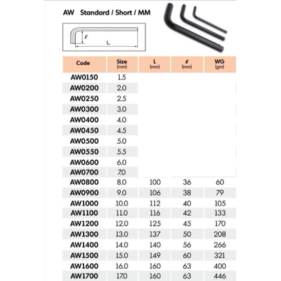 1.5MM-17MM Hex Allen Key MADE IN JAPAN 1.5mm2mm2.5mm3mm4mm4.5mm5mm5.5mm6mm7mm8mm9mm10mm11mm12mm13mm14mm15mm16mm17mm