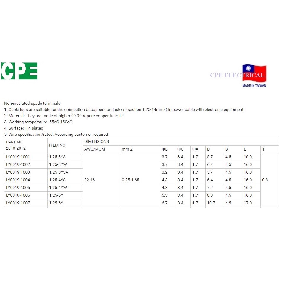 1.5mm 2.5mm NON INSULATED SPADE TERMINALS Y Lug U Lug TAIWAN - 100pcs