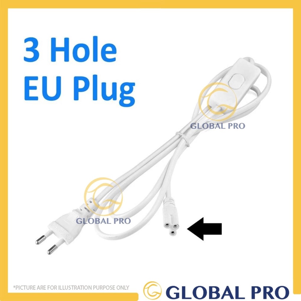 1.8M 3 Pins EU Switch Cable Wire LED T8 / T5 Connector 3 Pin Lamp Wiring Light Connector T5 LED Tube Light Plug Wiring