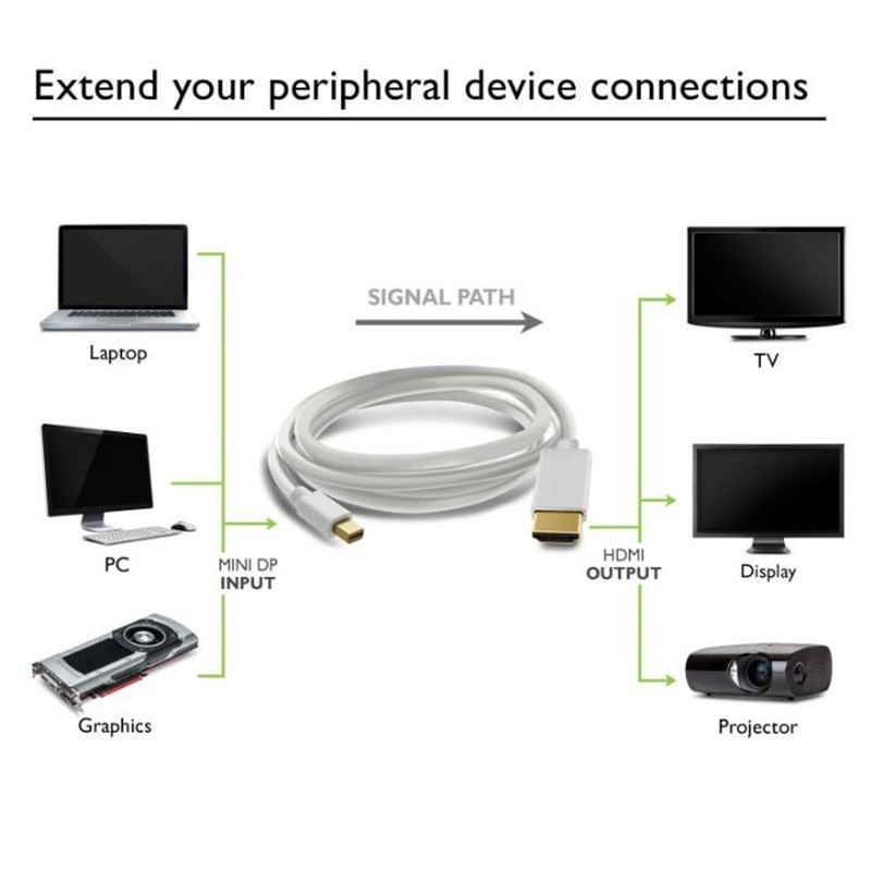 1.8M/6FT Thunderbolt Displayport Mini DP to HDMI Male Adapter cable For Apple Macbook Mac Air