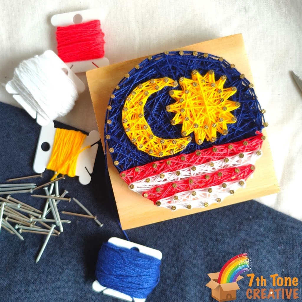 10*10cm DIY Kraftangan Bendera Malaysia dgn Tali Kraf, Merdeka Handcraft String Art, Kids Handcraft DIY