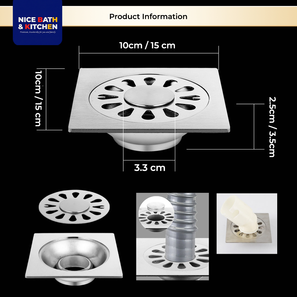 10/15cm SUS304 Stainless Steel Washing Machine Floor Trap Drain Grating With Angle Connector|Washing Machine Floor Drain