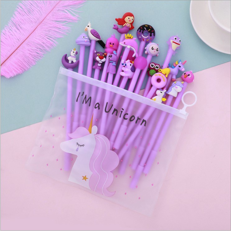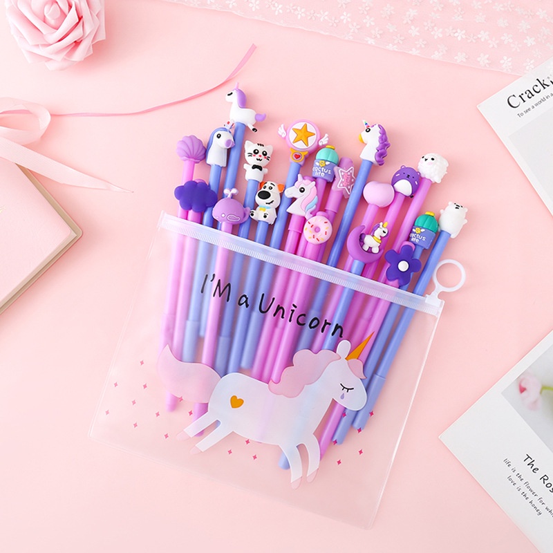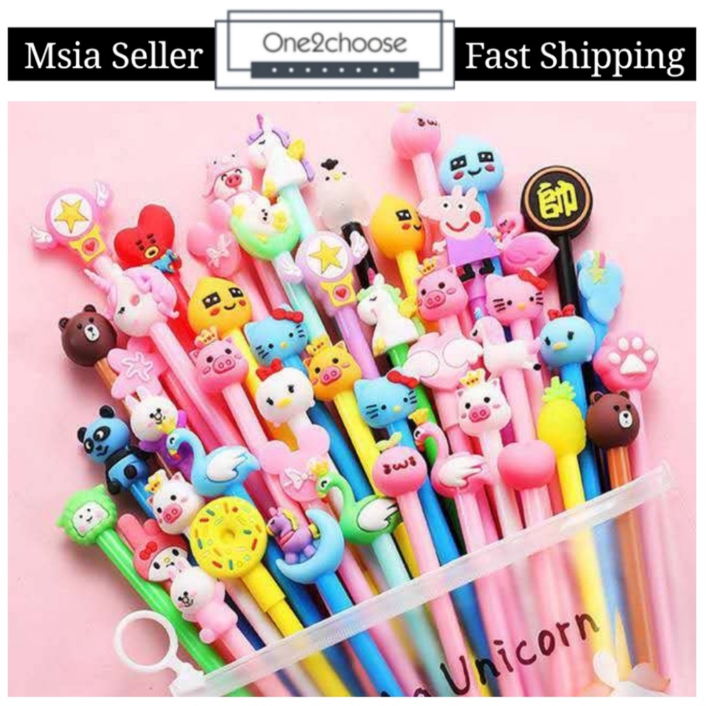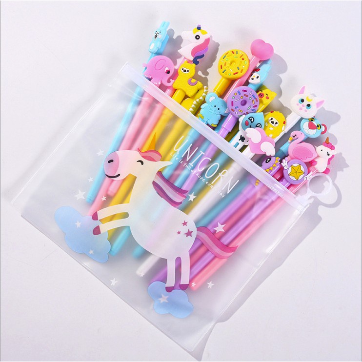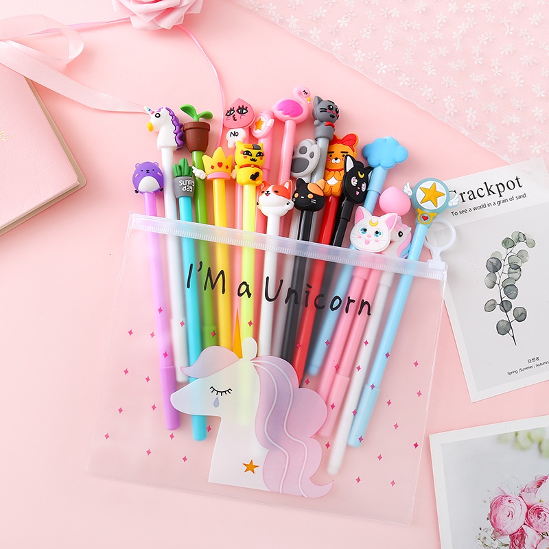 10pcs Cartoon Gel Pen FREE ZIP BAG 0.5mm Black Ink Stationery