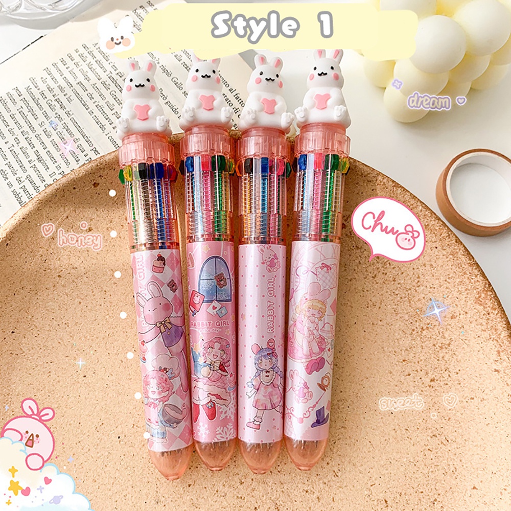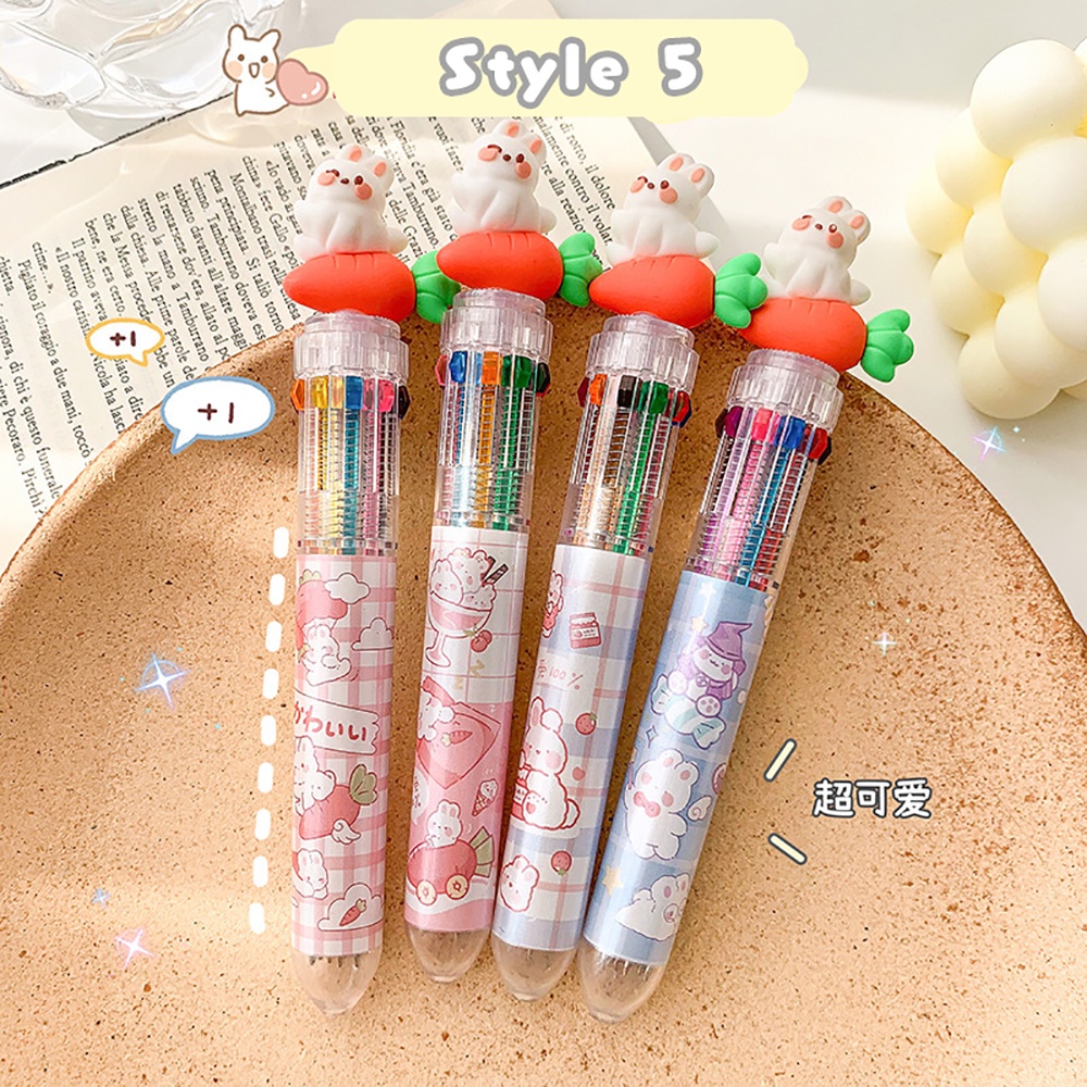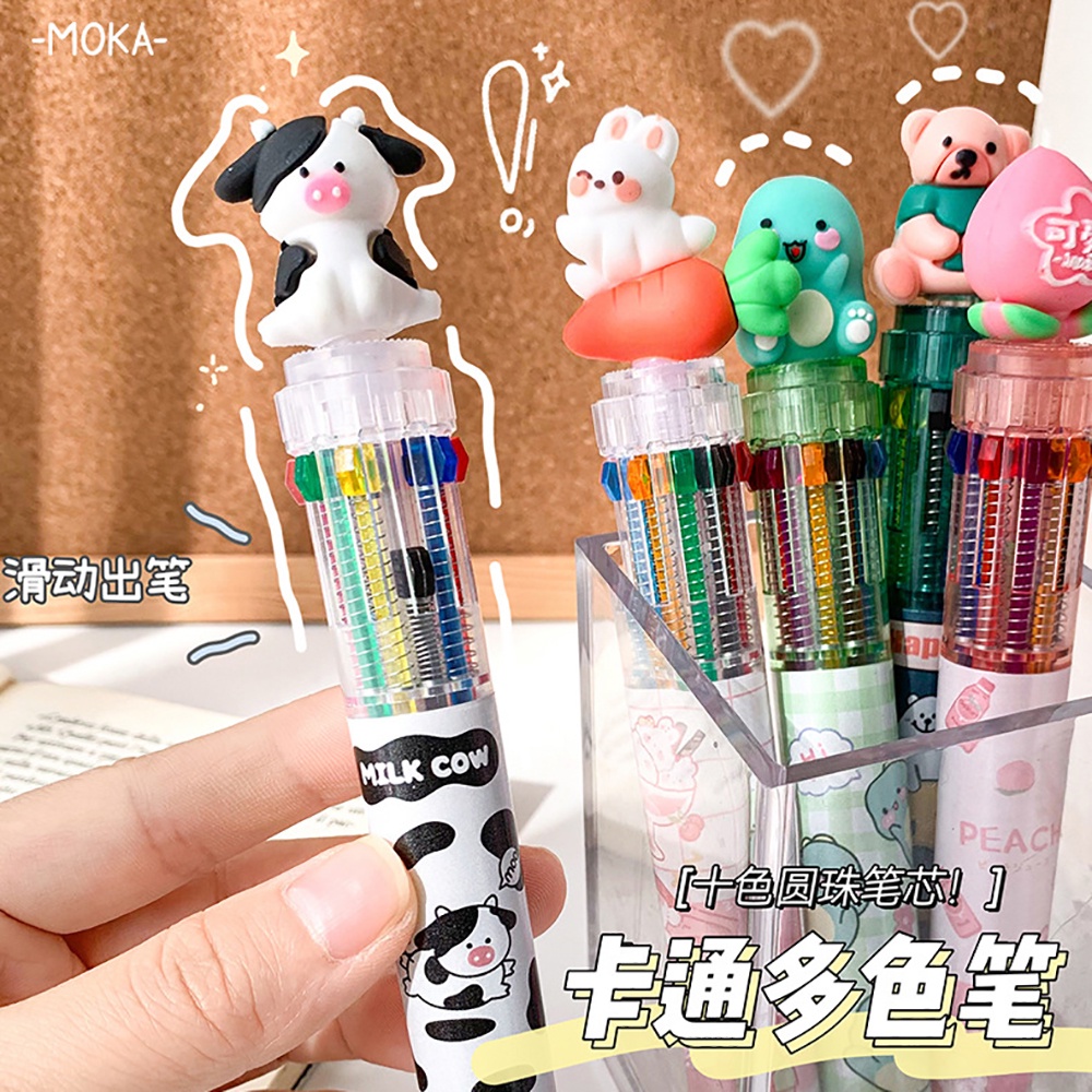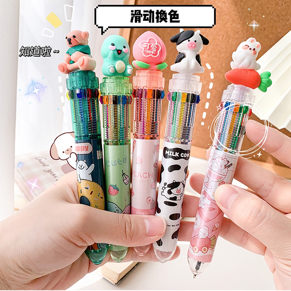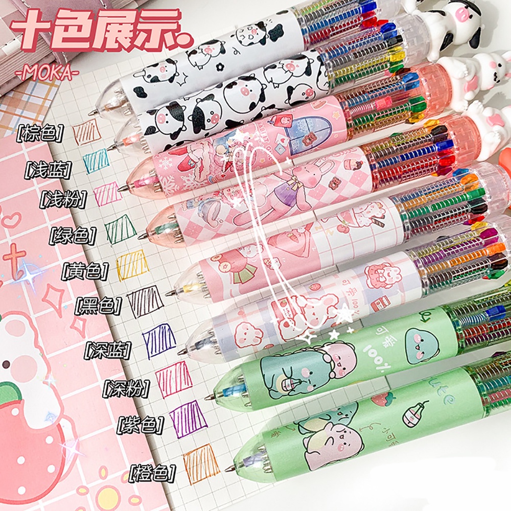 10 Colors Cute Cartoon Ballpoint Pen School Office Supply Stationery Multicolored Pens Colorful Refill
