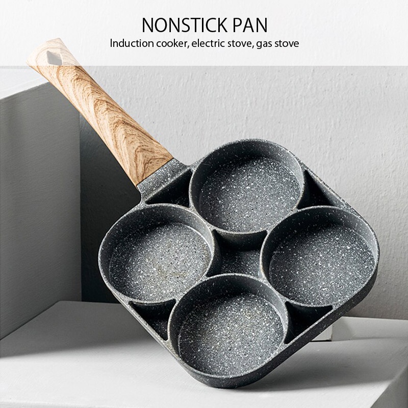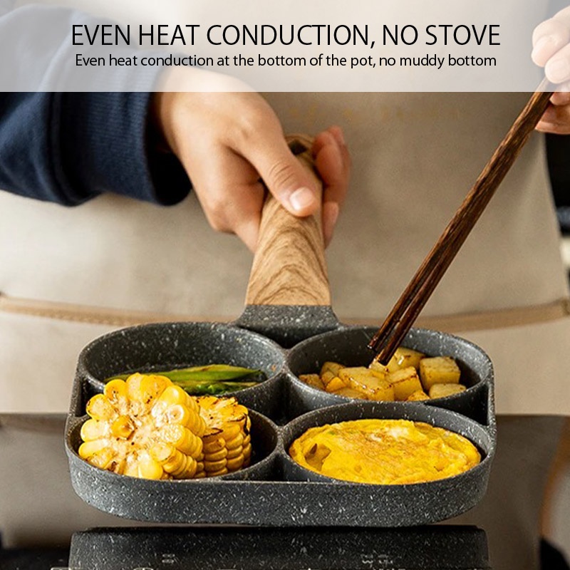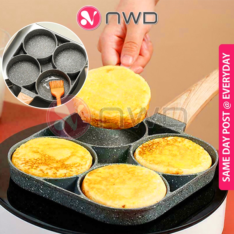 《 𝟰 𝗜𝗡 𝟭 》Korean Non Stick Four Hole Frying Pan Breakfast Pancake Fried Egg Burger Kitchen Cookware Tools Kuali Telur 煎锅
