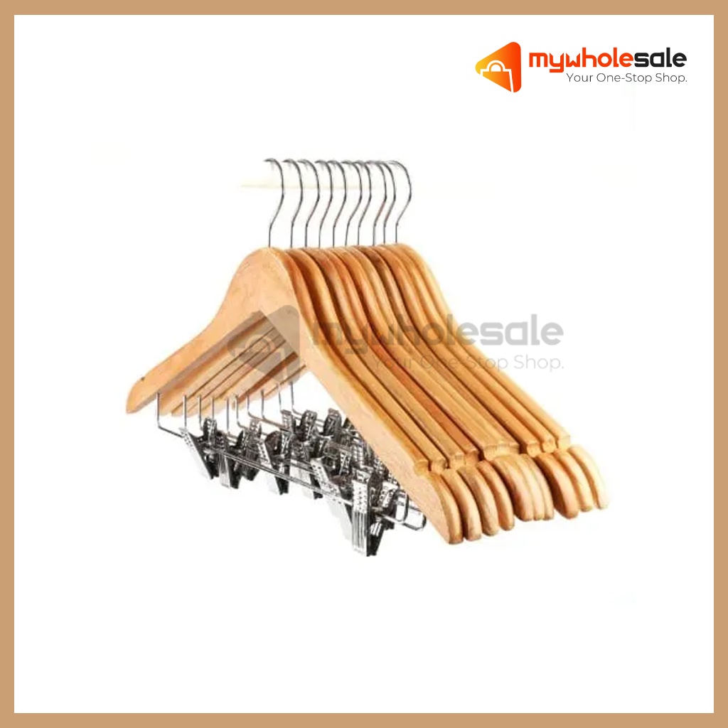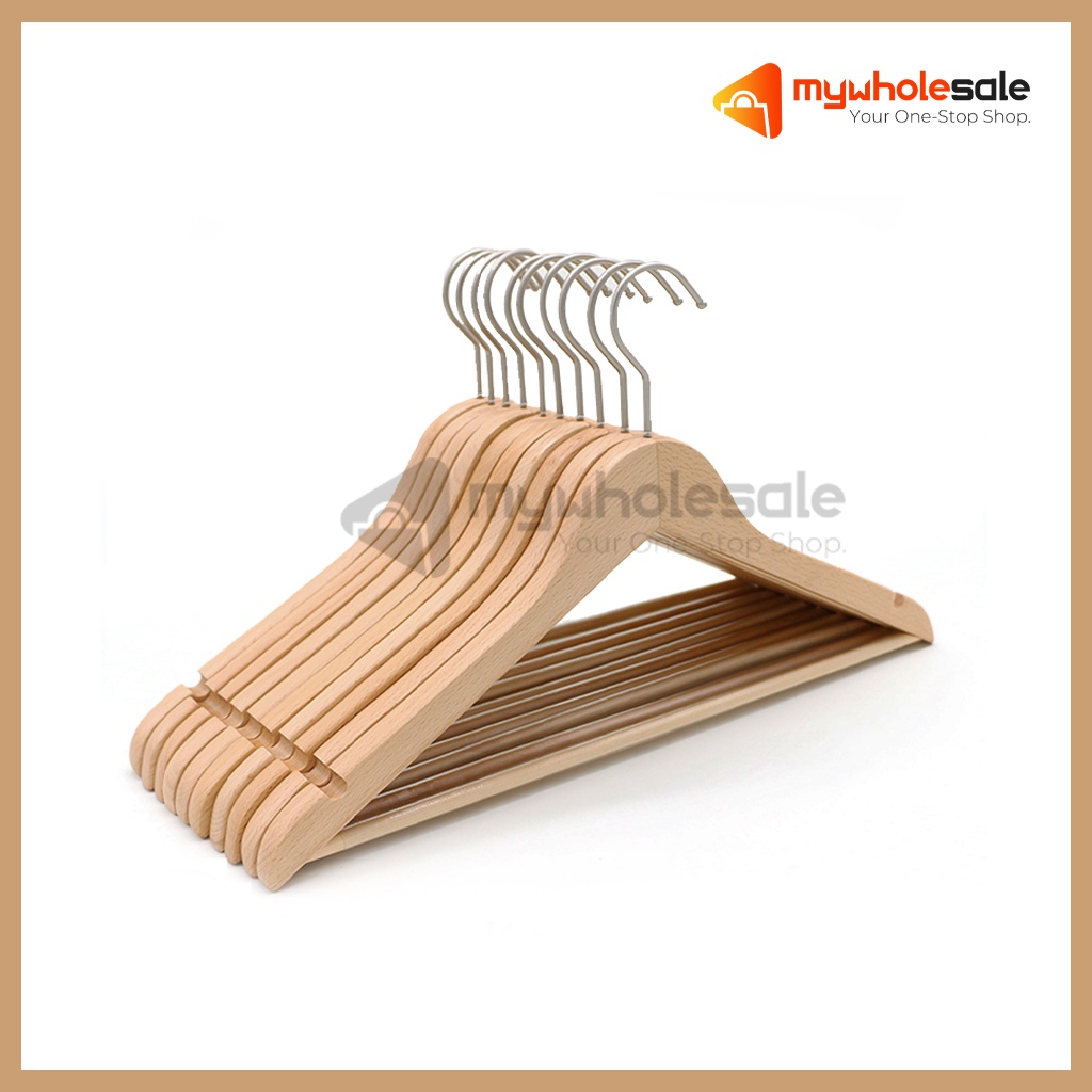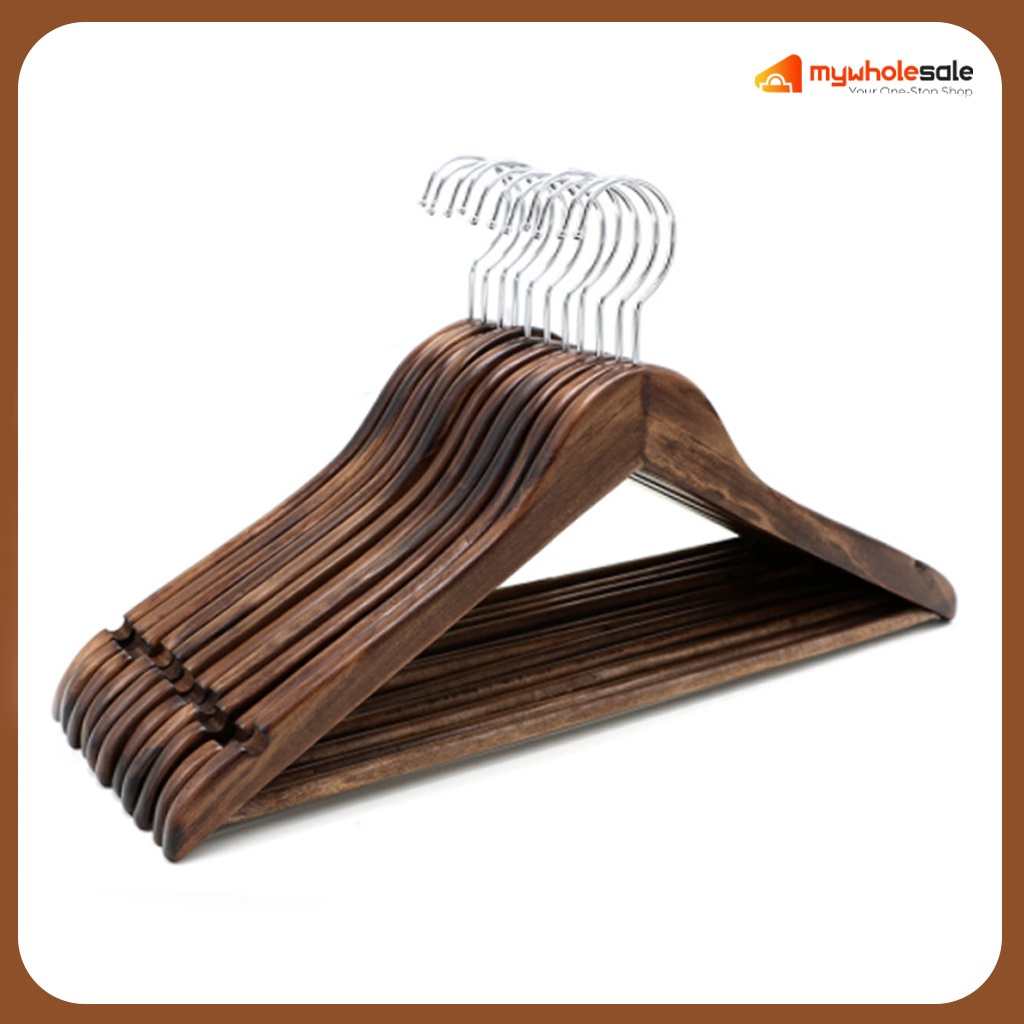 10 PCS High Quality Wooden Hanger Clothes Solid Hanger Penyangkut Baju Wood Hanger Kayu
