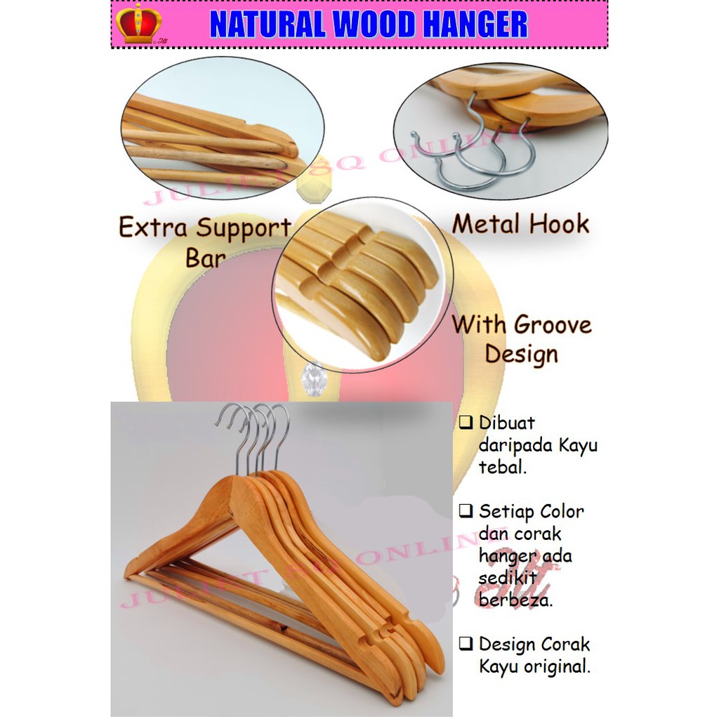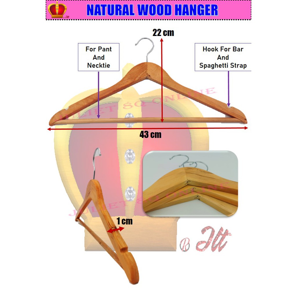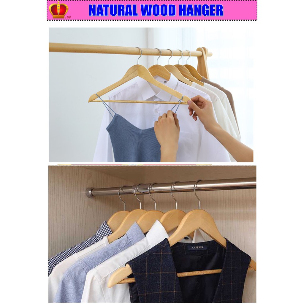 10 Pcs Natural Wood Hanger Solid Wood Clothes Hanger Adults Hanger Hanger Kayu Bar Penyangkut Baju bakaian Kayu 43cm