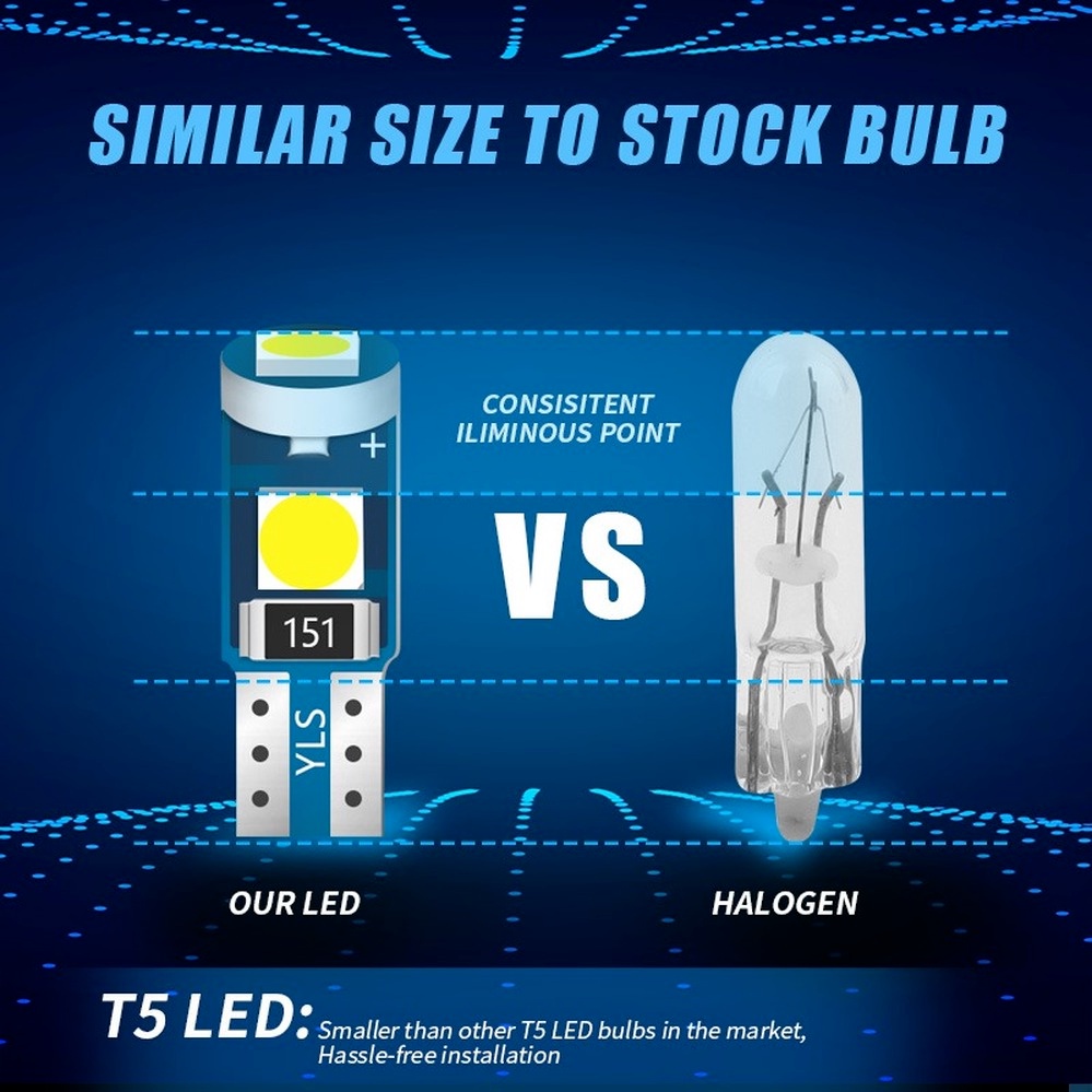 10 Pcs T5 LED Bulbs 74 73 37 2721 LED Bulb Canbus Error Free for Auto Car Dashboard Instrument Panel Gauge Cluster Indicator Lights