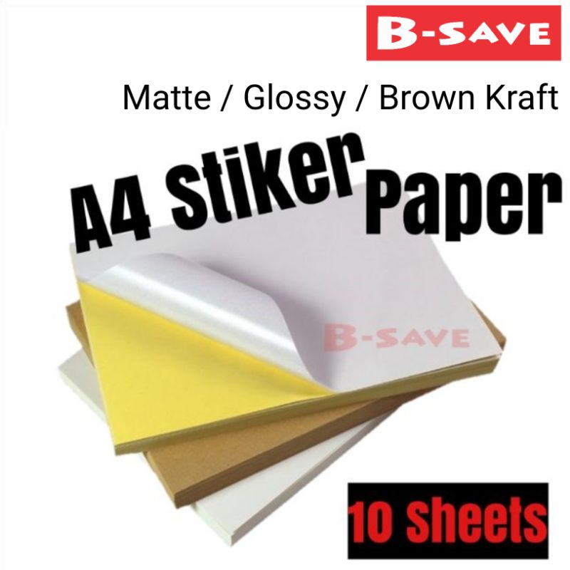 10 Sheets A4 White Simili Sticker / Matte Sticker / White Sticker / Glossy Sticker / Brown Kraft Stiker