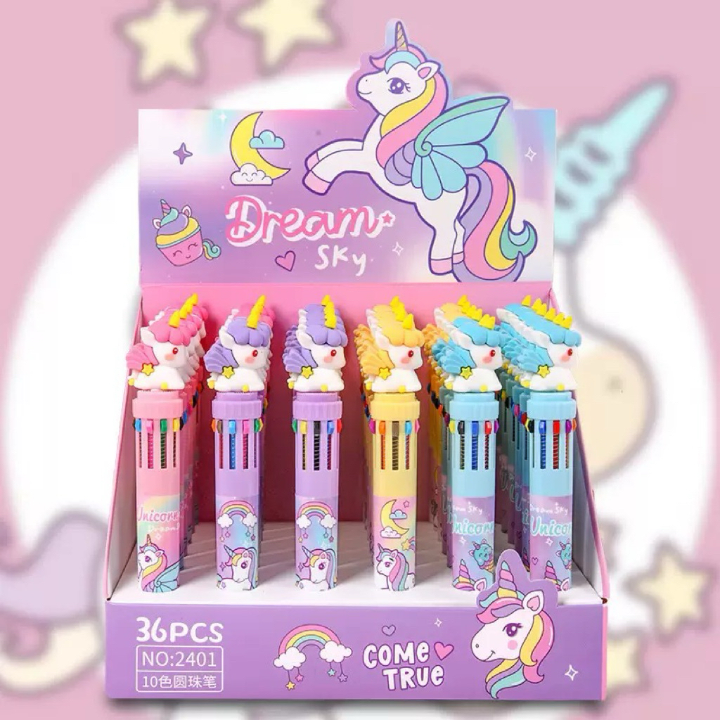 10 colour cute cartoon pen Unicorn Multicolour Ballpoint Pen Student Gift Goodies Bag Alat Tulis Murah Cute Stationery