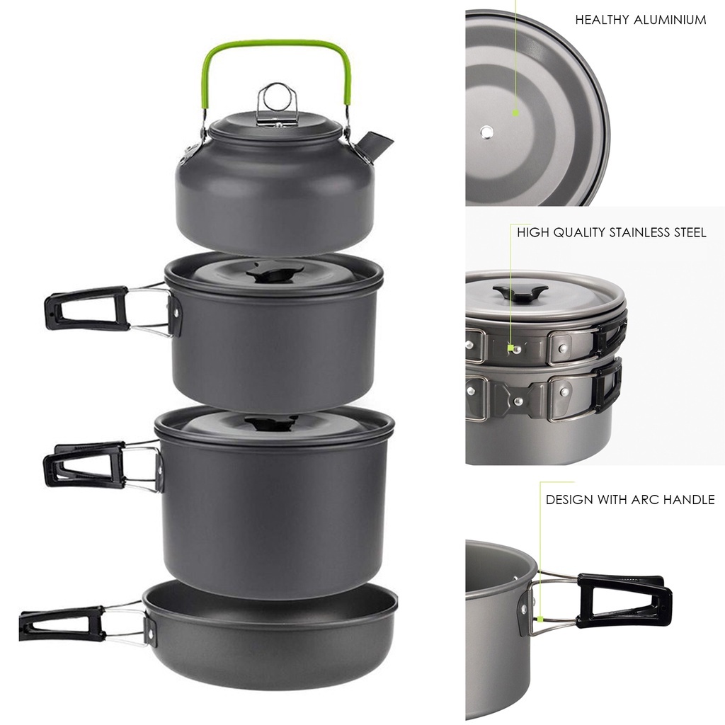10 in 1 Camping Cookware Set Camping Pot Outdoor Cooking Kitchen For Travel Tableware Set Kettle Portable Camping Masak