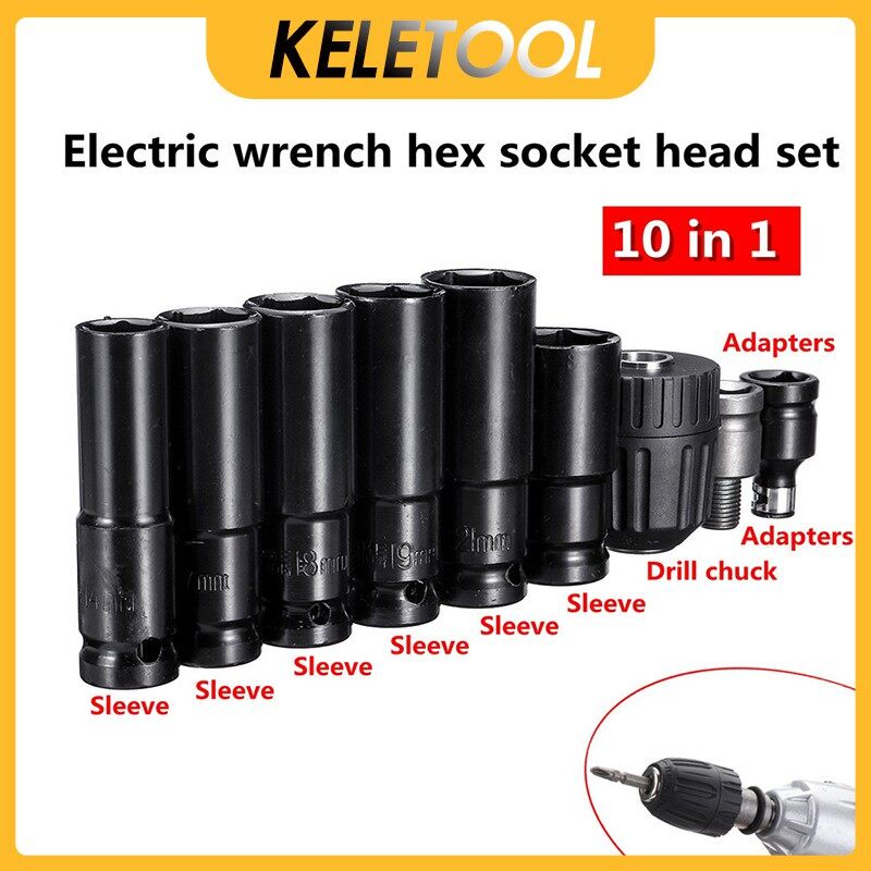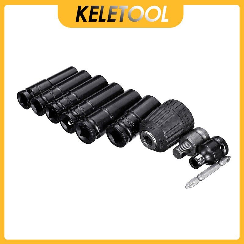 10 in1 1/2 Inch Hex Deep Socket Wrench Deep Socke 6 Point Socket Set Adapter Ratchet Wrench Auto Repair Sleeve