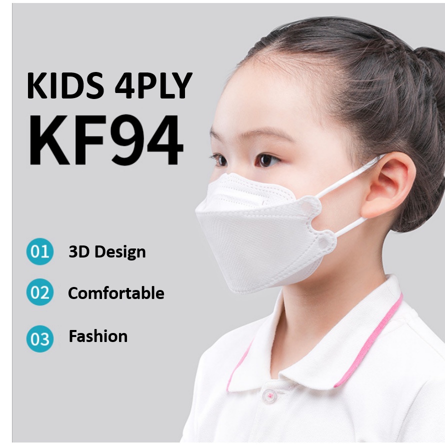 10 pcs KF94 Kids Face Mask 4 Layers Colour 3D Face Mask Disposable Earloop 4ply Korea