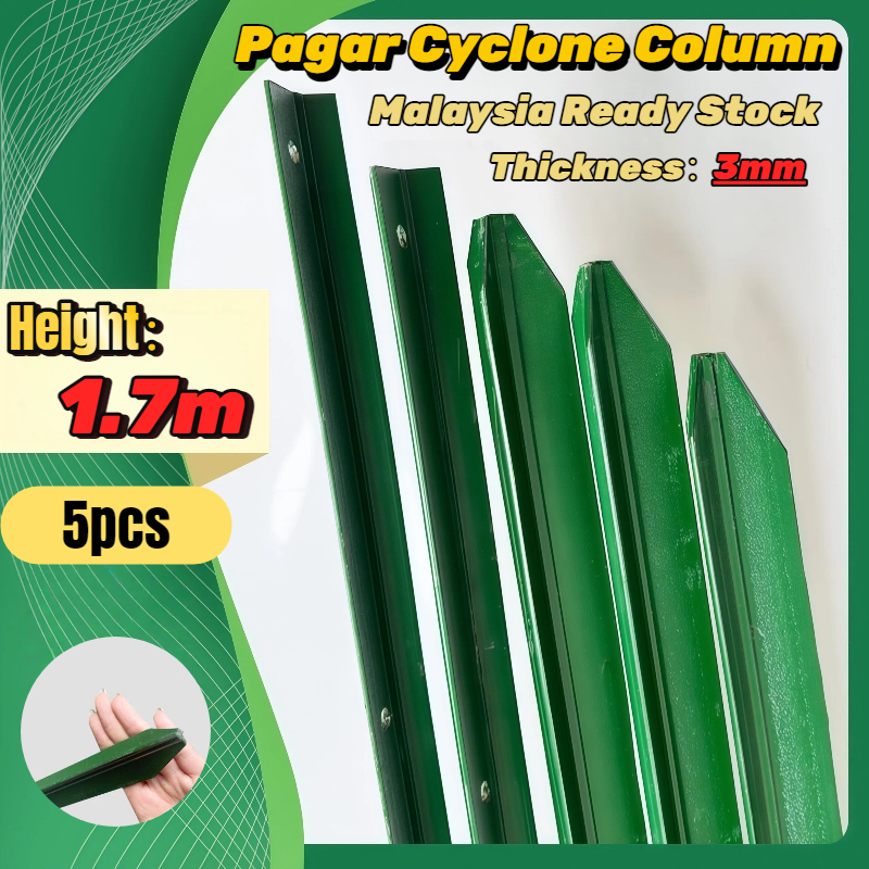 5/10pcs Tiang pagar besi Pagar Cyclone Column Iron Column Fence Posts Triangle Steel Pro Fence Post 1.5/1.7/2.0/2.3/2.5m