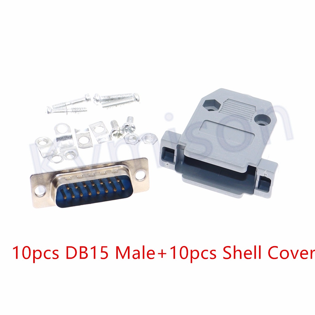 10 sets RS232 Parallel Serial Port DB15 15 Pin 15 Way 2 Rows D Sub Fmale/Male Solder Connector + Plastic Assemble Shell Cover
