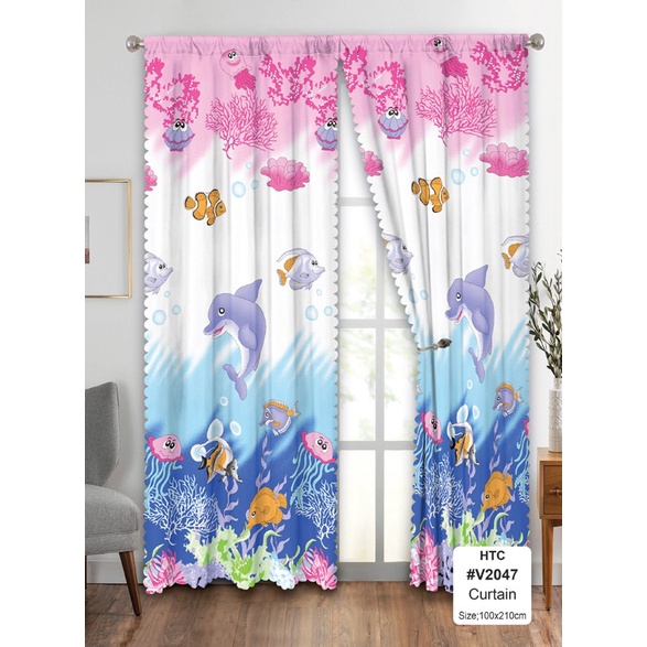 100*210cm 1PC New Style Cartoon Mickey&Mouse Window Door Room Decors Home Living Semi Cotton Curtain Langsir Tingkap Murah Langsir Blackout