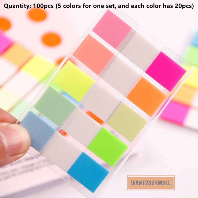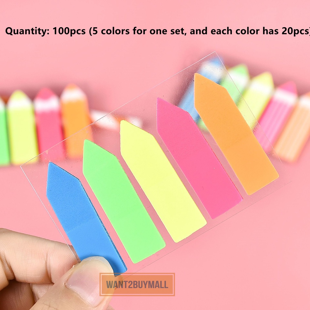 100-200pcs PET Stick Notes Tab Neon Fluorescent Arrow Sticker Transparent Bookmark Marker Memo Sticky Checklist Office