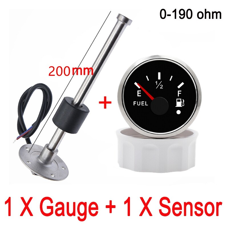 100-500mm 52mm Universal Fuel Level Gauge Waterproof Oil Level Indicator Gauge Kit with Red Backlight 0-190ohm Fuel Sensor for Car Motorcycle