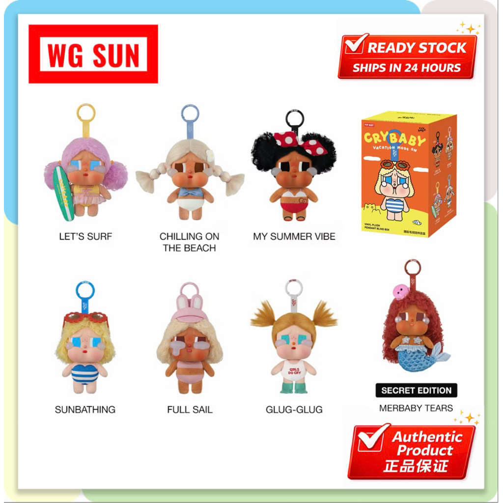 100% AUTHENTIC 🔥CRYBABY Vacation Mode On Series Vinyl Plush Pendant Blind Box(Ready Stock/现货)100%官方正品🔥哭娃度假搪胶毛绒挂件盲盒