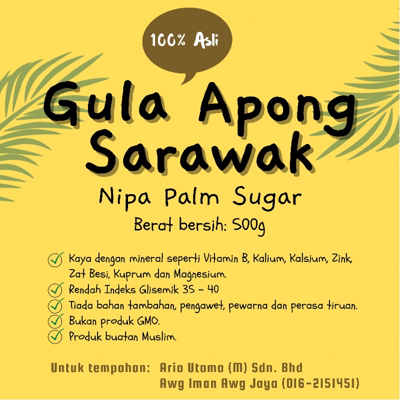 100% Asli Gula Apong Sarawak (100% Pure Nipa Palm Sugar)