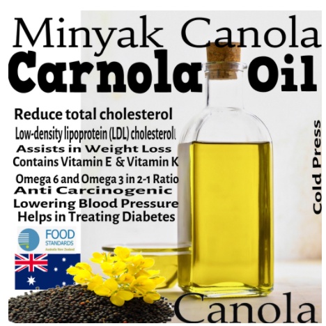 100% Canola Oil/minyak canola/500ml/1000ml/ Pure Natural Cold-Press/Vitamin E Dan Vitamin K