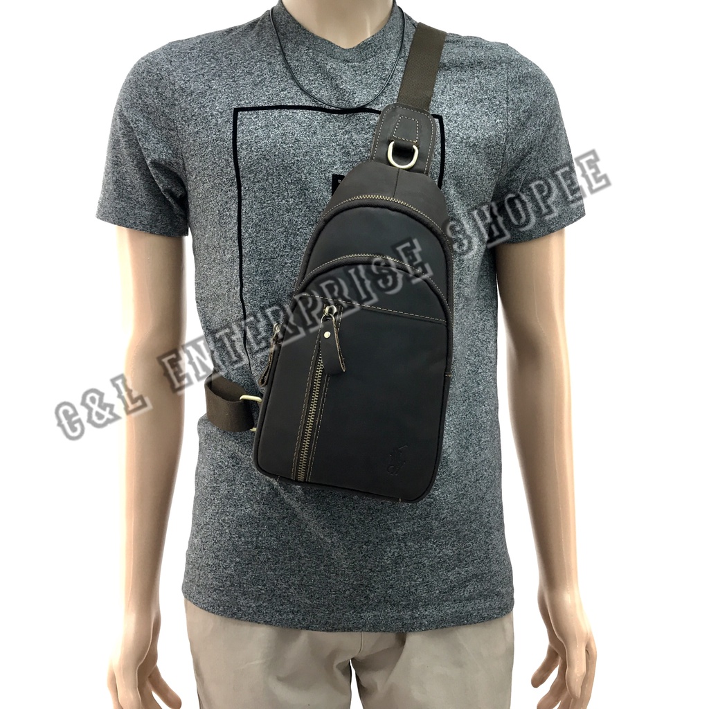 100% Genuine Cowhide Leather Chest Bag Sling Bag Crossbody Bag Kulit Asli Kulit Lembu Bag dada