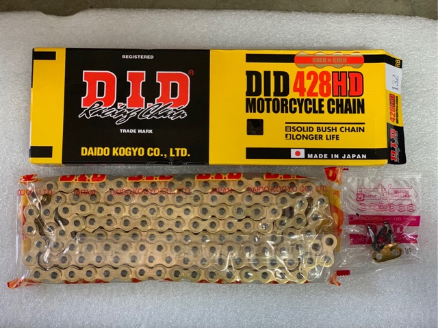 100% MADE IN JAPAN ~ DID RACING 428/415 GOLD CHAIN HD Original Hologram x 120L > 132L FULL GOLD HEAVY DUTY RANTAI