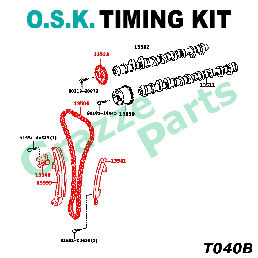 100% Made In Japan O.S.K. Timing Chain Kit Set for Toyota Vios NCP42 NCP91 NCP93 NCP150 1.5 1NZ-FE 1NX-FXE (124S)