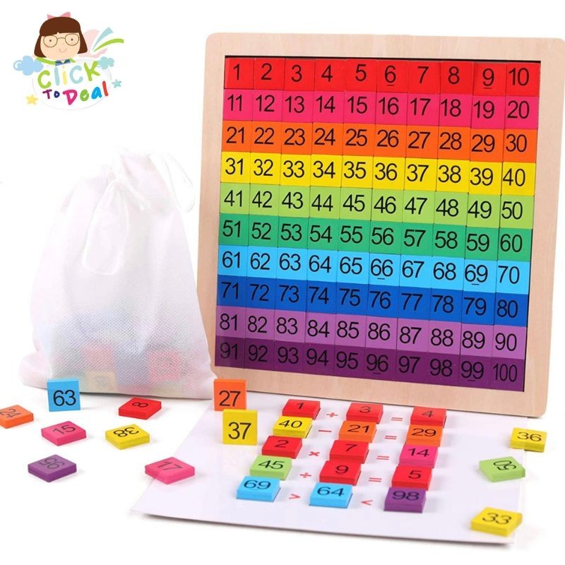 100 Number Board Wooden Math Learning Board Toy, Montessori 1-100 Consecutive Numbers