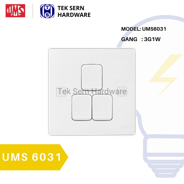 100% ORIGINAL *SIRIM APPROVED* UMS 6 Series 10A 1/ 2/ 3/ 4 Gang 1 Way Switch [UMS6011/ 6021/ 6031/ 6041]