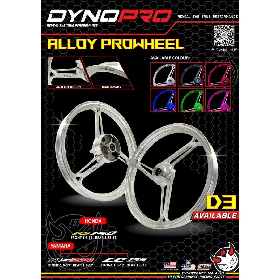 100% ORIGINAL DYNOPRO D3 SPORT RIM RS150 RSX150 ALLOY PRO WHEEL D3 DYNO PROJECT SPORT RIM 3 BATANG