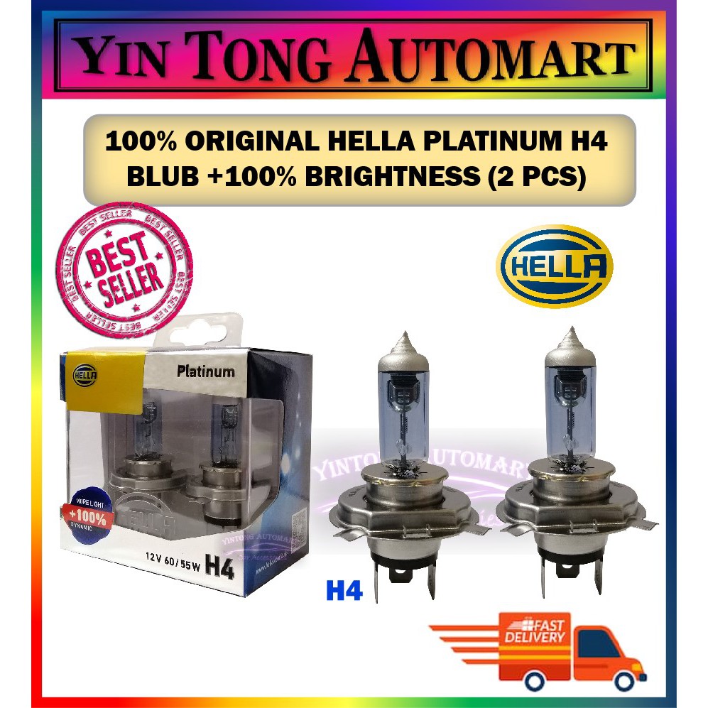 100% ORIGINAL HELLA PLATINUM H4 BULB +100% BRIGHTNESS (2 PCS)