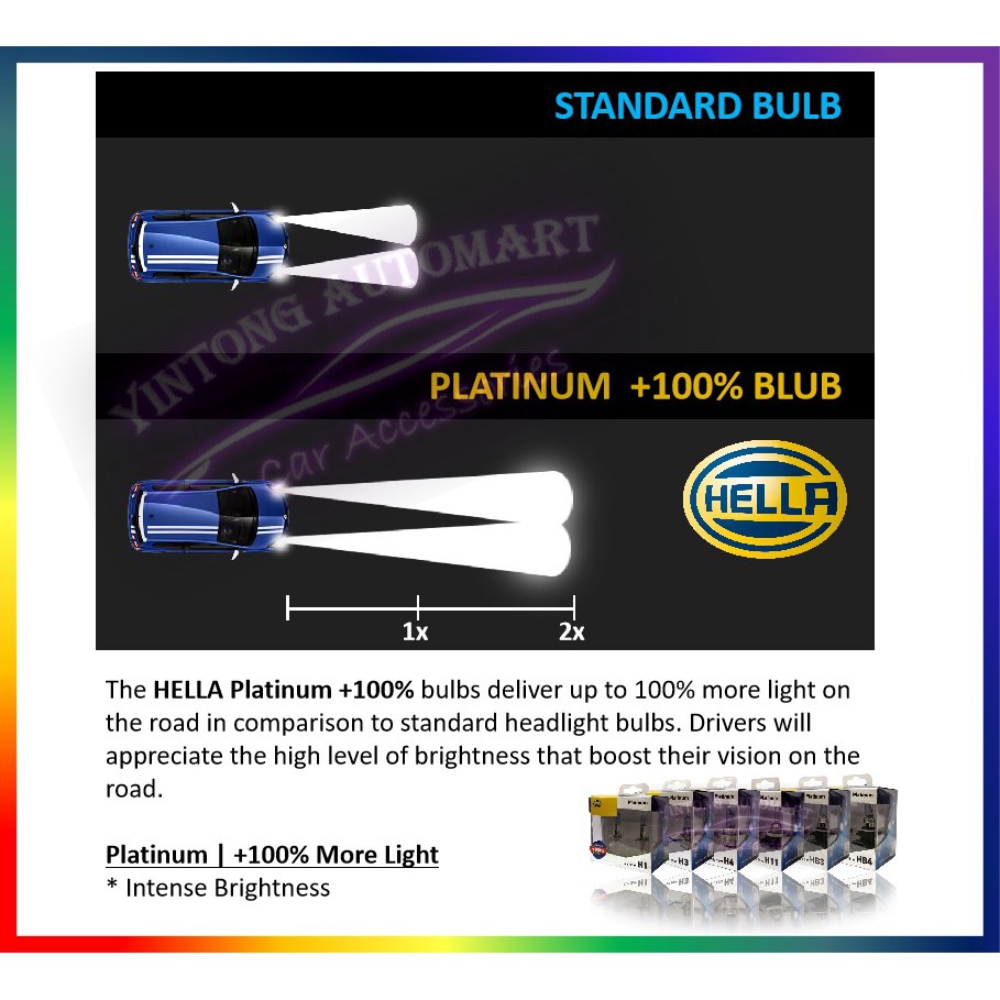 100% ORIGINAL HELLA PLATINUM HB3 BULB +100% BRIGHTNESS (2 PCS)