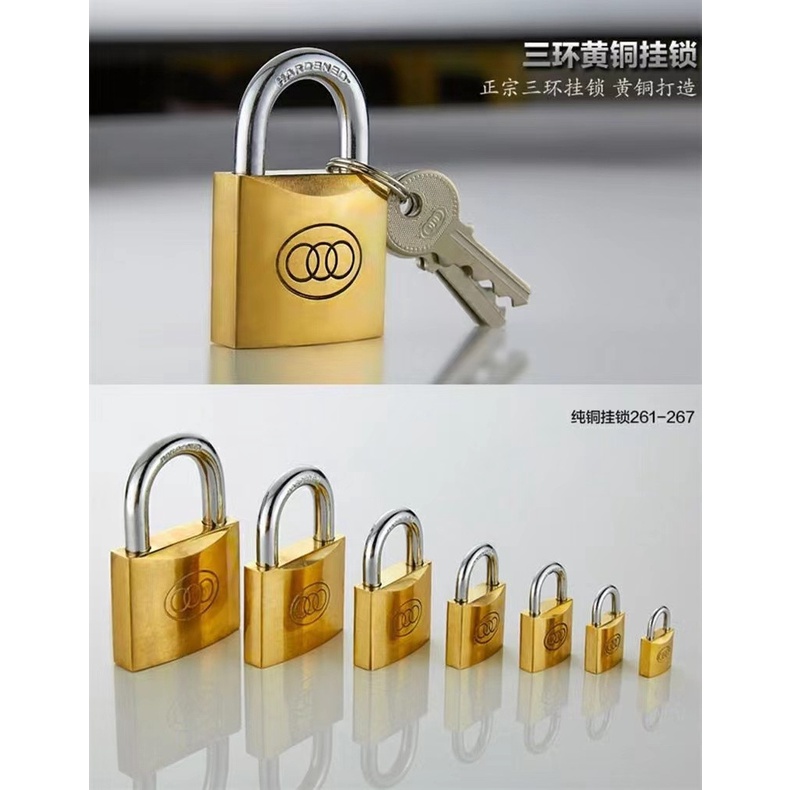 100% ORIGINAL Tri-Circle Brass Padlock + 3 Brass Key 20mm 25mm 32mm 38mm 50mm 63mm Kunci Mangga