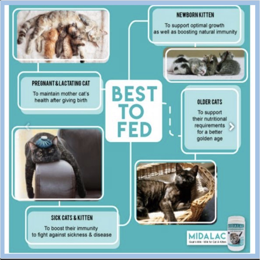 100% Original Authentic Midalac Goat Milk For Cat Susu Kambing Kucing Midalac Goat Milk For Kitten Cat Goat Milk Kitten