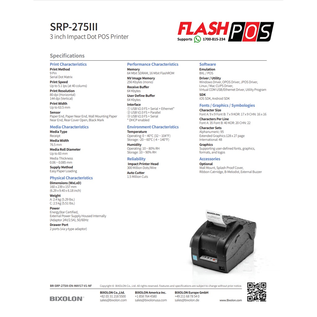 100%Original Bixolon SRP 275 iii Dot Matrix Printer (with 1sample ribbon)