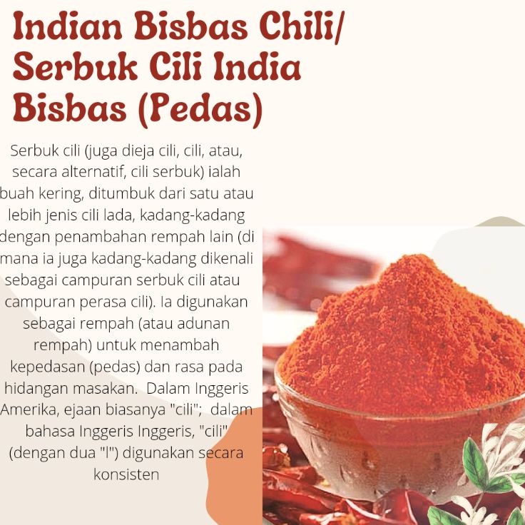 100% PURE INDIAN CHILI POWDER 100g ( SPICY ) SERBUK CILI INDIAN ( PEDAS ) NATURAL ORGANIC SEASONING