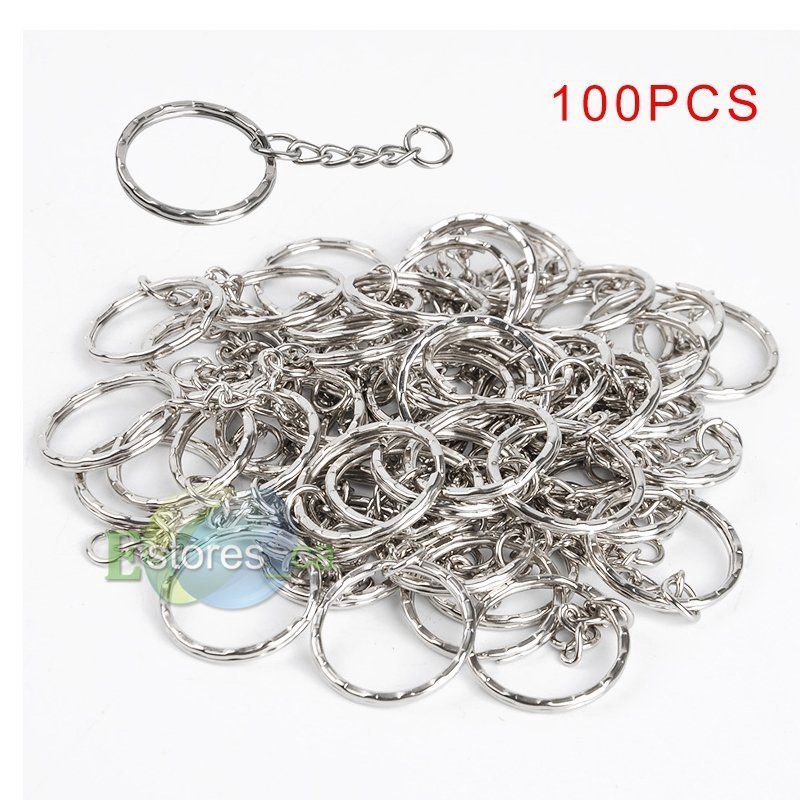 100 Pcs Polished Silver DIY Key Rings Key Chains With Link Chain Key Holder 25mm