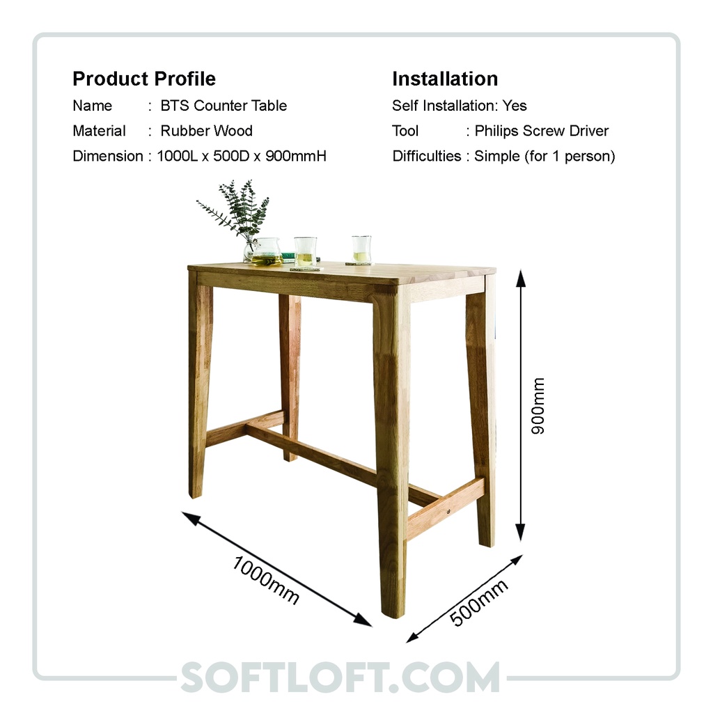 100% Solid Wood BTS Bar Tall Table Simple High Wooden Desk Island Dining Cafe Restaurant Meja