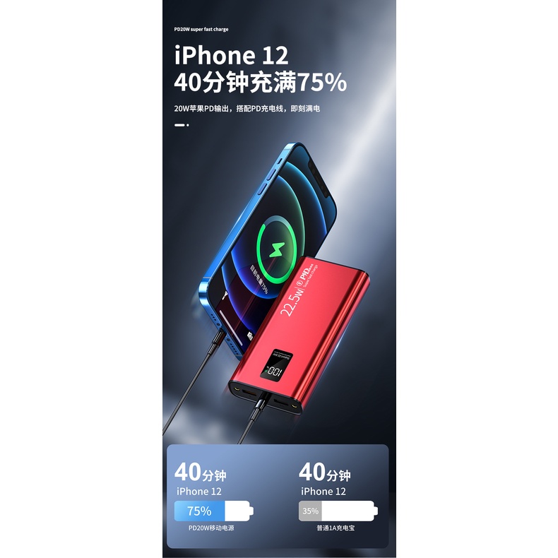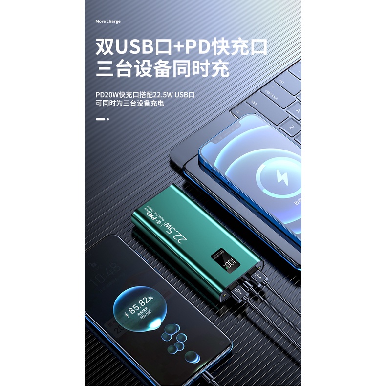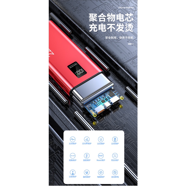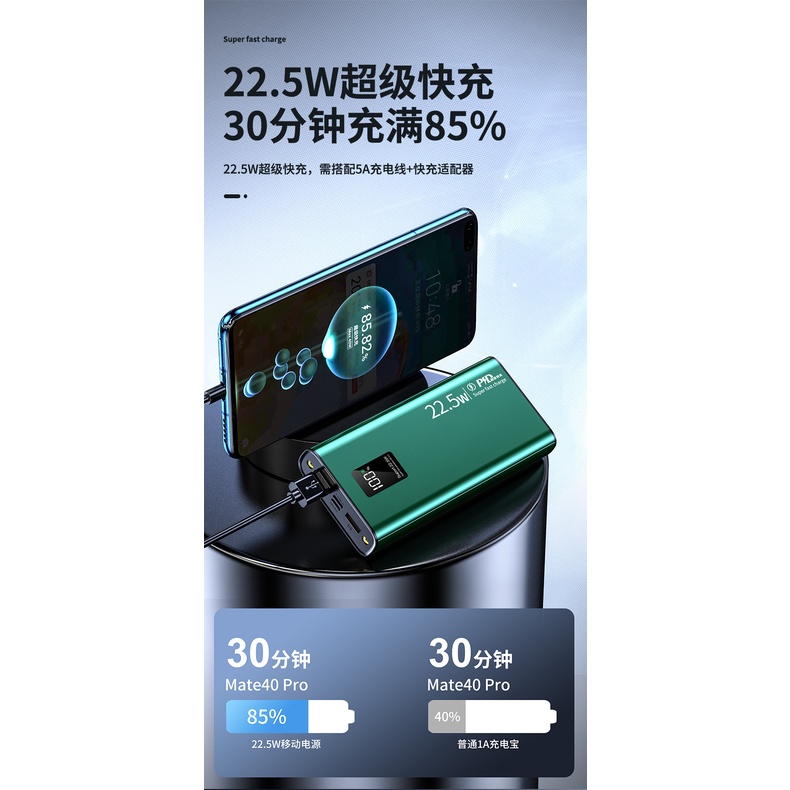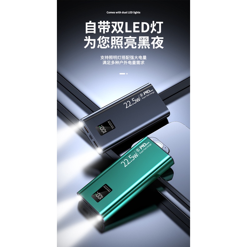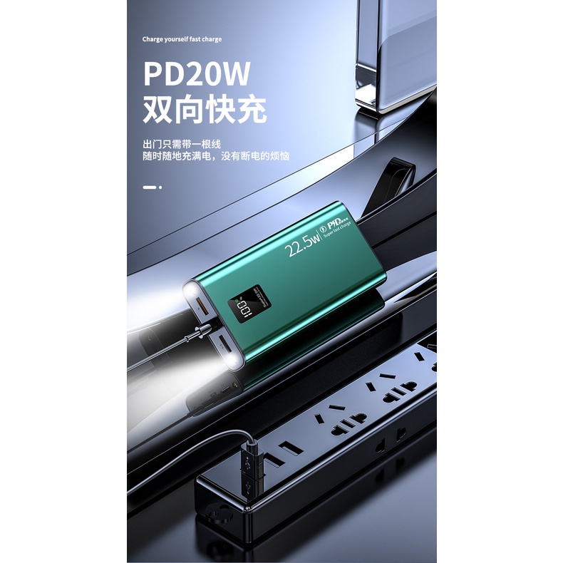 100000mAH Power Bank Portable Fast Charging Full Screen Built-in 3 Cables Powerbank External Batter Fast Charging LED