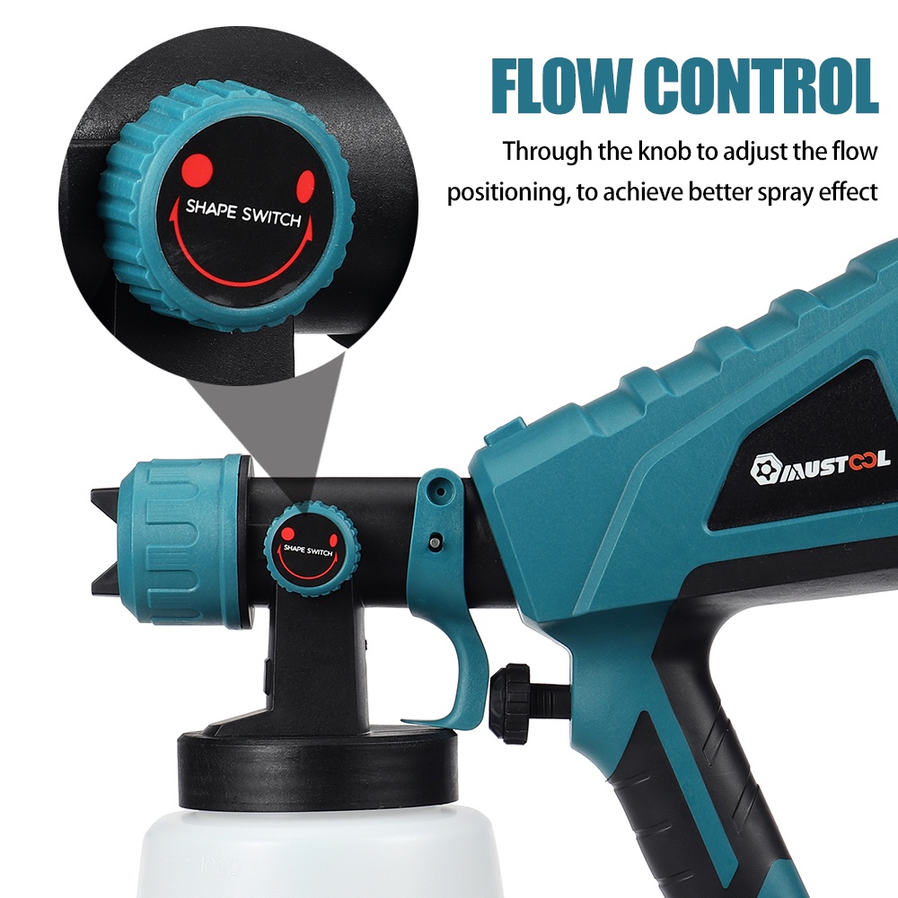 1000ml 88VF Electric Spray Gun 3 Nozzle Size Household Electric Paint Sprayer Flow Control Airbrush for 18V Battery