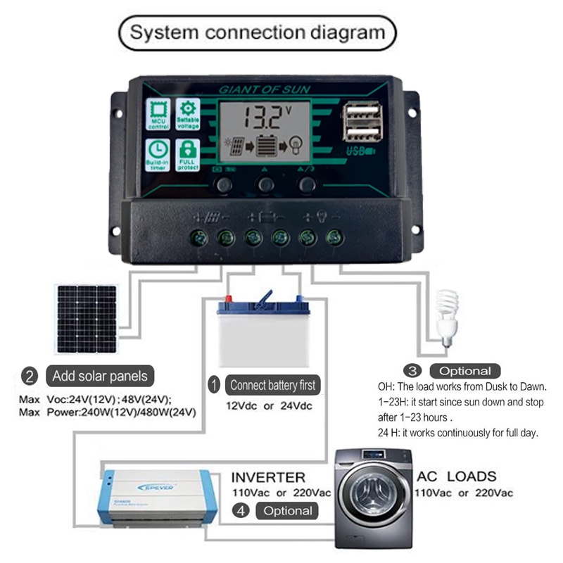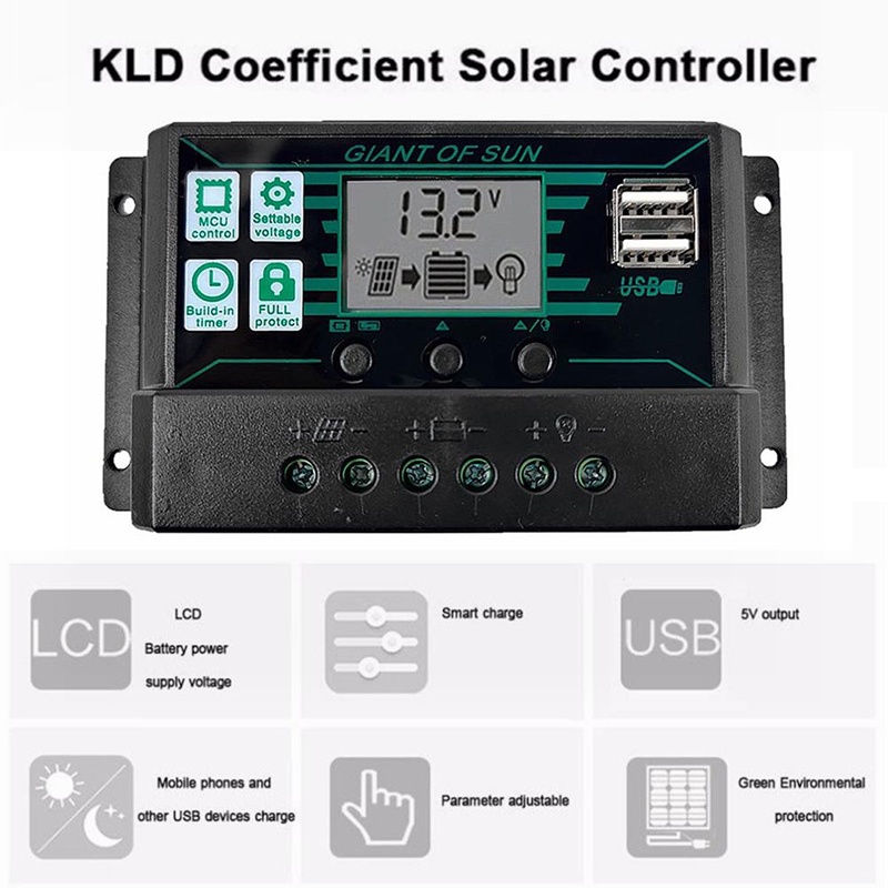 100A PWM Solar Charge Controller 12V 24V Solar Panel Battery Regulator 2 USB Ports