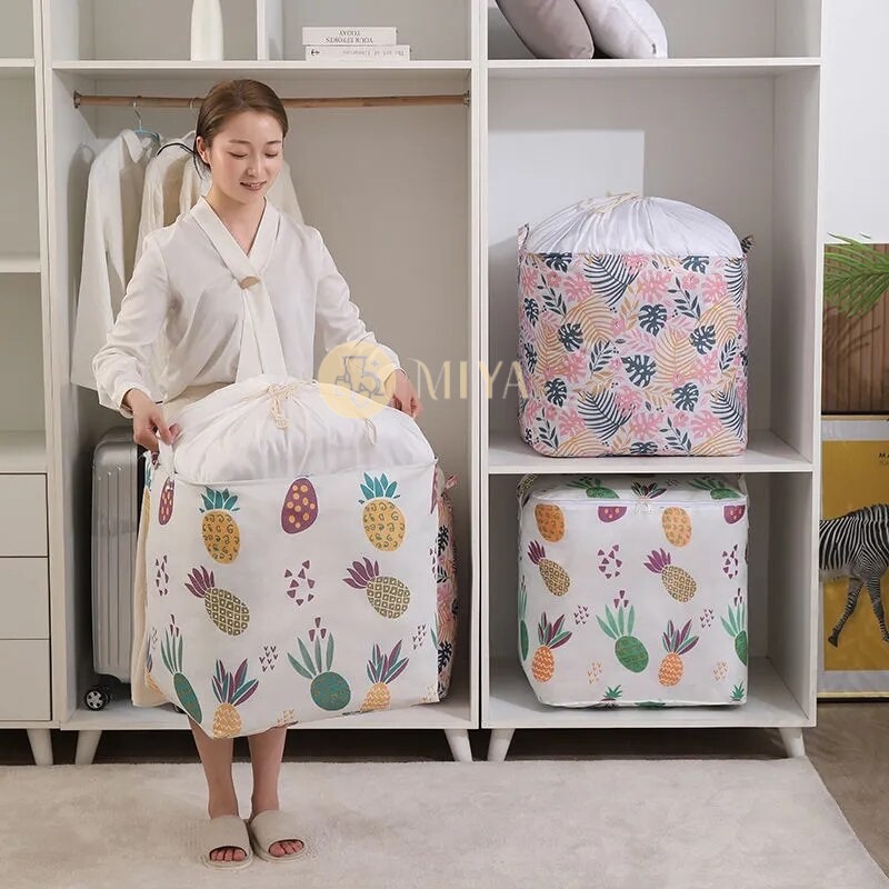 100L Foldable Storage Box Laundry Basket With Cover Large Capacity Clothes Storage Quilt Cover Bakul Baju Kapasiti Besar