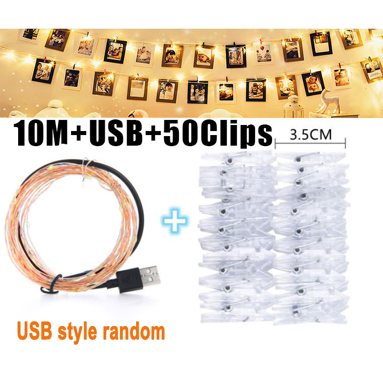 100LED Photo Clip String Lights with 50 Clips Battery Powered USB for Bedroom Birthday Wedding Party Christmas