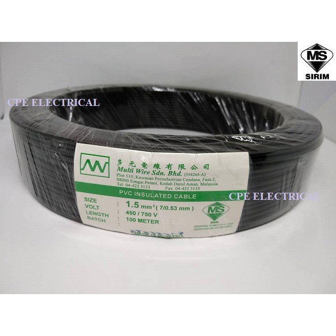 100M x MULTI 1.5mm (7/0.53mm) PVC Insulated Power Cable Wire
