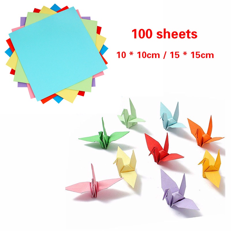100PCS 10cm/15cm Sheets Origami Paper Double Sided Coloured Craft Square Assorted DIY Folded Papercraft Tools