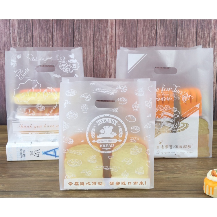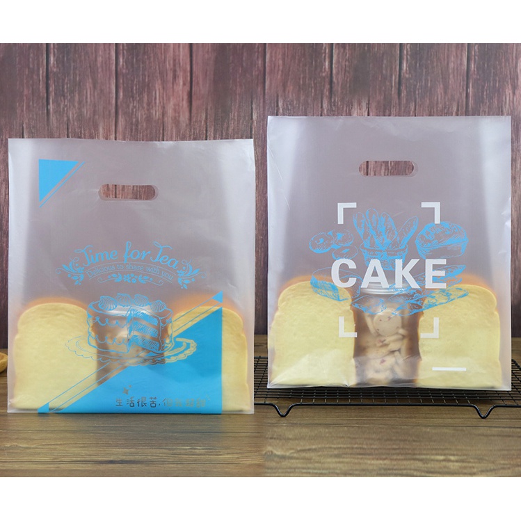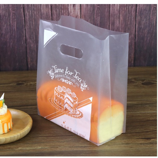 100PCS Cake Bakery Thank You Transparent Plastic bag Baking Bakery Gift Bag With Handle Plastik Beg