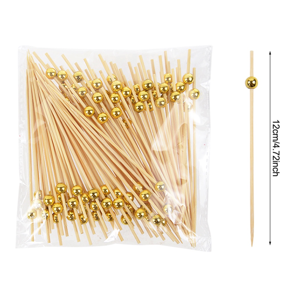 100PCS Cocktail Picks, Fancy Cocktail Toothpicks for Appetizers Picks, Handmade Bamboo Cocktail Skewers for Appetizers Fruit Party, Gold Pearl Food Picks Charcuterie Accessories (4
