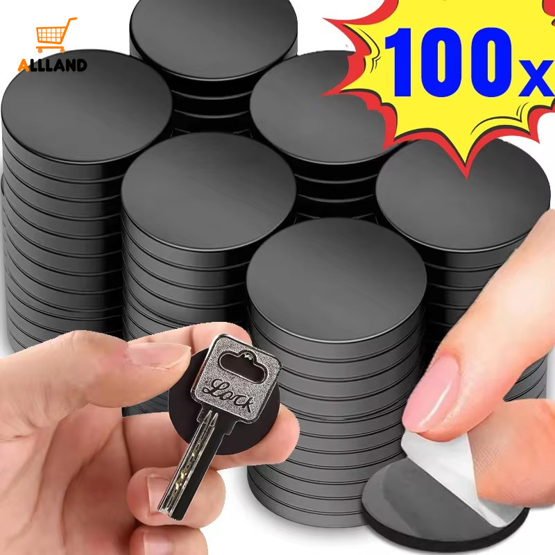100PCS Self Adhesive Soft Magnetic Discs - Flexible Square Round Magnets Sheet Rubber Stickers - DIY Refrigerator Office Tools